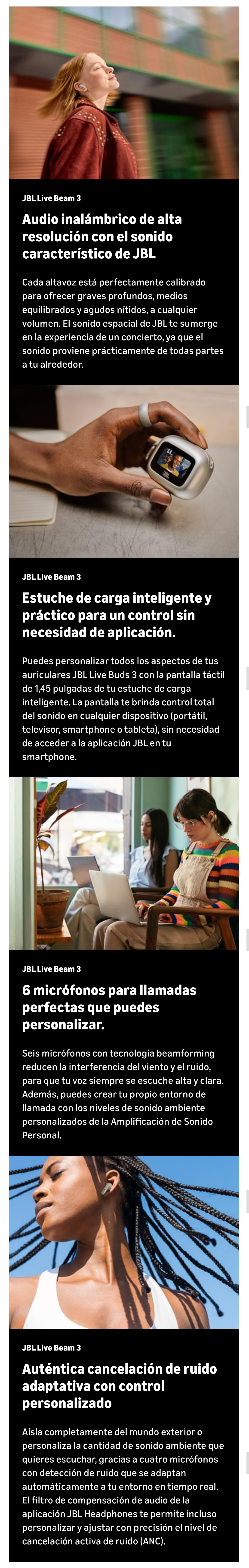 • 📶 Conexión Bluetooth 5.4 • 🖐️ Panel táctil multifunción • 🔇 Cancelación de ruido • 🎤 Micrófono para llamadas • 🔋 Batería recargable hasta 12 horas • ⚡ Estuche cargador 30 h